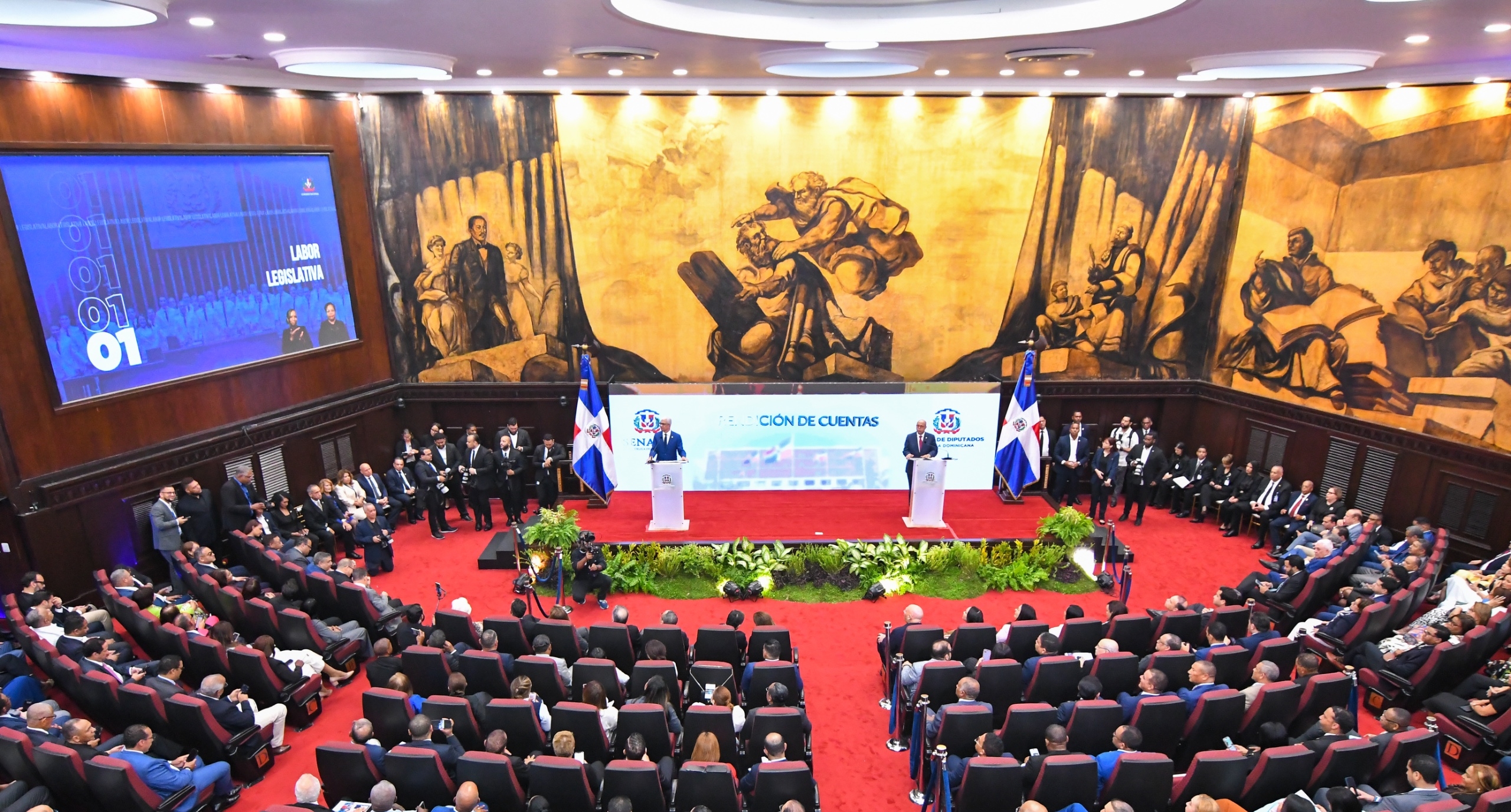 En un acto celebrado en el salón de la Asamblea Nacional, Ricardo de los Santos y Alfredo Pacheco, presidentes de las Cámaras Alta y Baja del Congreso Nacional respectivamente, dieron a conocer en detalles los logros alcanzados durante la gestión correspondiente al periodo agosto 2024-agosto 2025.