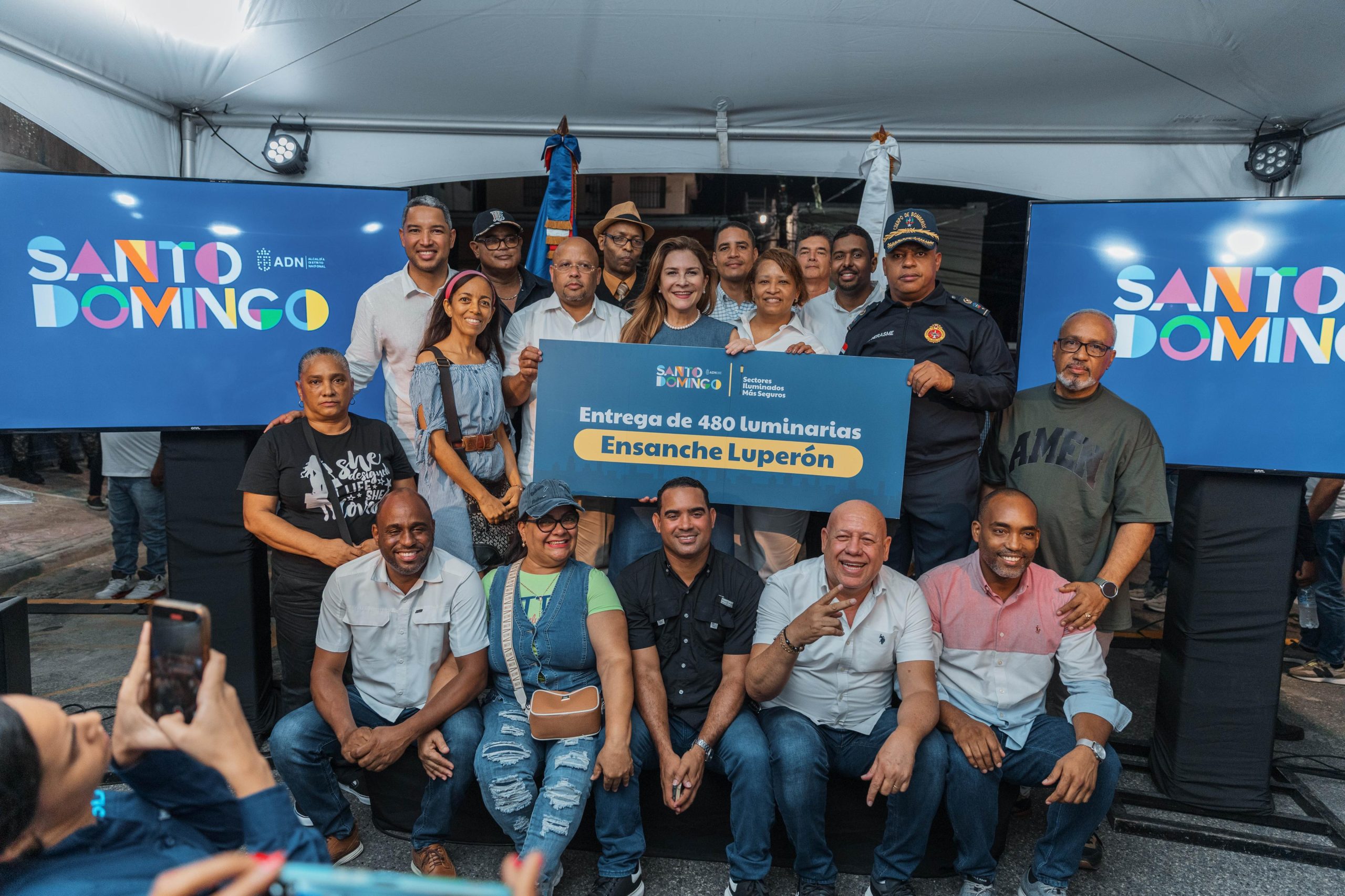 La alcaldesa del Distrito Nacional, Carolina Mejía dispuso la iluminación el martes del Ensanche Luperón con la entrega de 480 luminarias LED instaladas en 43 calles, dotando al sector de mayor seguridad.