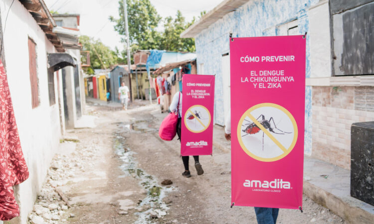 Amadita Laboratorio Clínico llevó a cabo una importante jornada educativa sobre el dengue, el zika y la chikungunya en diferentes barrios de Santo Domingo, Santiago, La Romana, San Cristóbal y Haina, logrando impactar a más de 7,500 hogares.