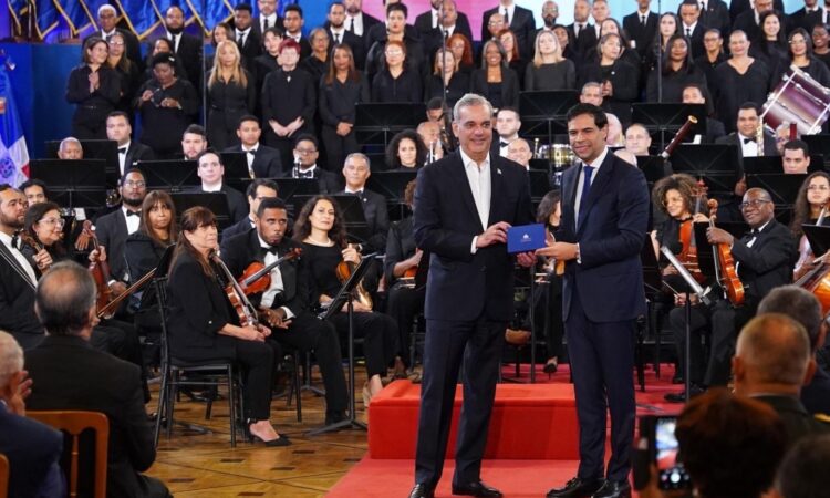 Santo Domingo.– El presidente Luis Abinader presentó esta noche en el Palacio Nacional una nueva grabación del himno nacional de la República Dominicana, interpretado por el Coro Nacional y la Orquesta Sinfónica Nacional, bajo la dirección del maestro José Antonio Molina.