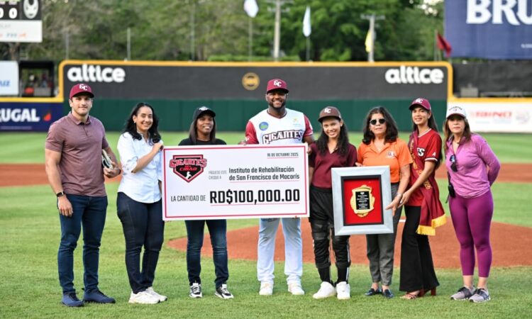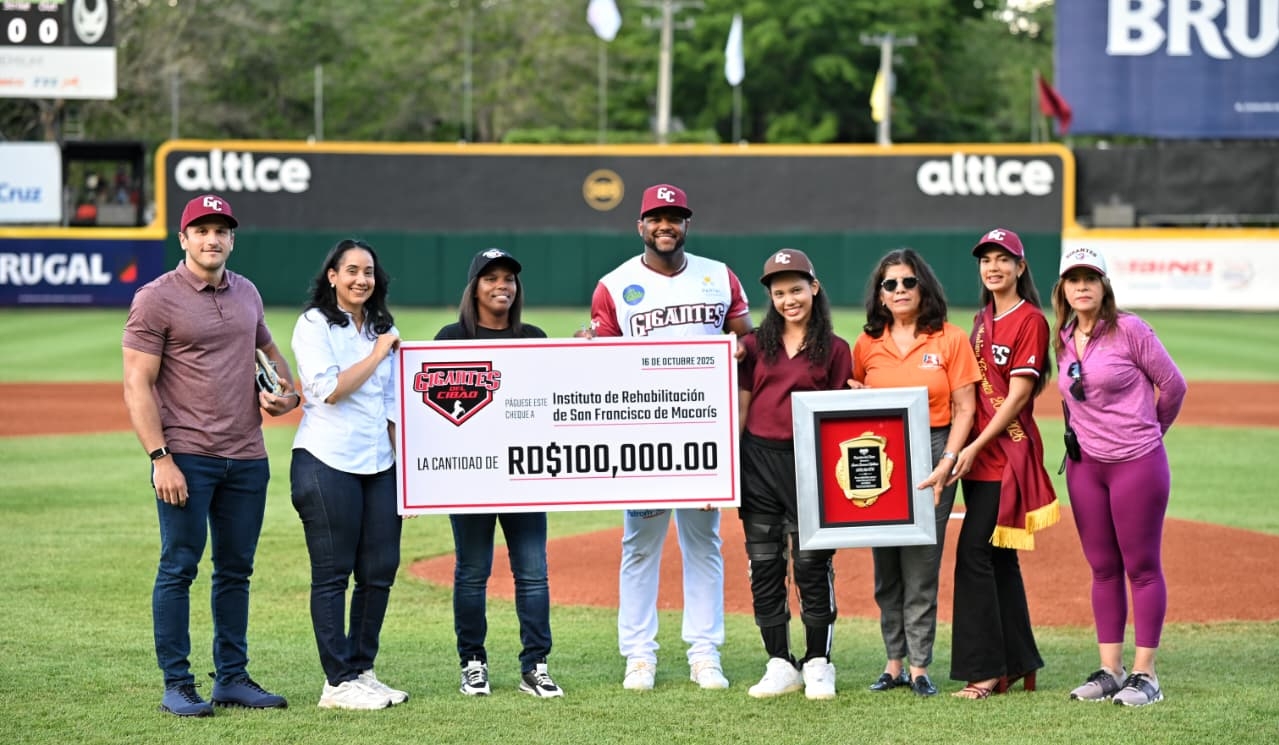 San Francisco de Macorís. – El equipo de béisbol profesional Gigantes del Cibao reconoció al Centro de Rehabilitación San Francisco por su labor solidaria y compromiso con la comunidad, con la entrega de una placa conmemorativa y un aporte económico de RD$100,000.