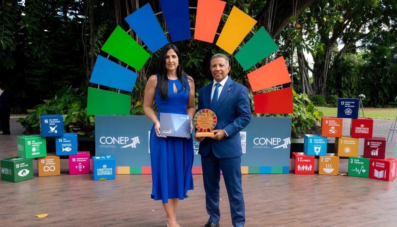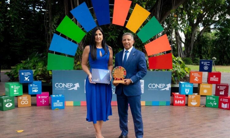 El galardón fue recibido por el director senior de Pymes de Banreservas, Juan Carlos García; y la directora de Sostenibilidad y Responsabilidad Social de la institución bancaria, Raquel Giraldez.