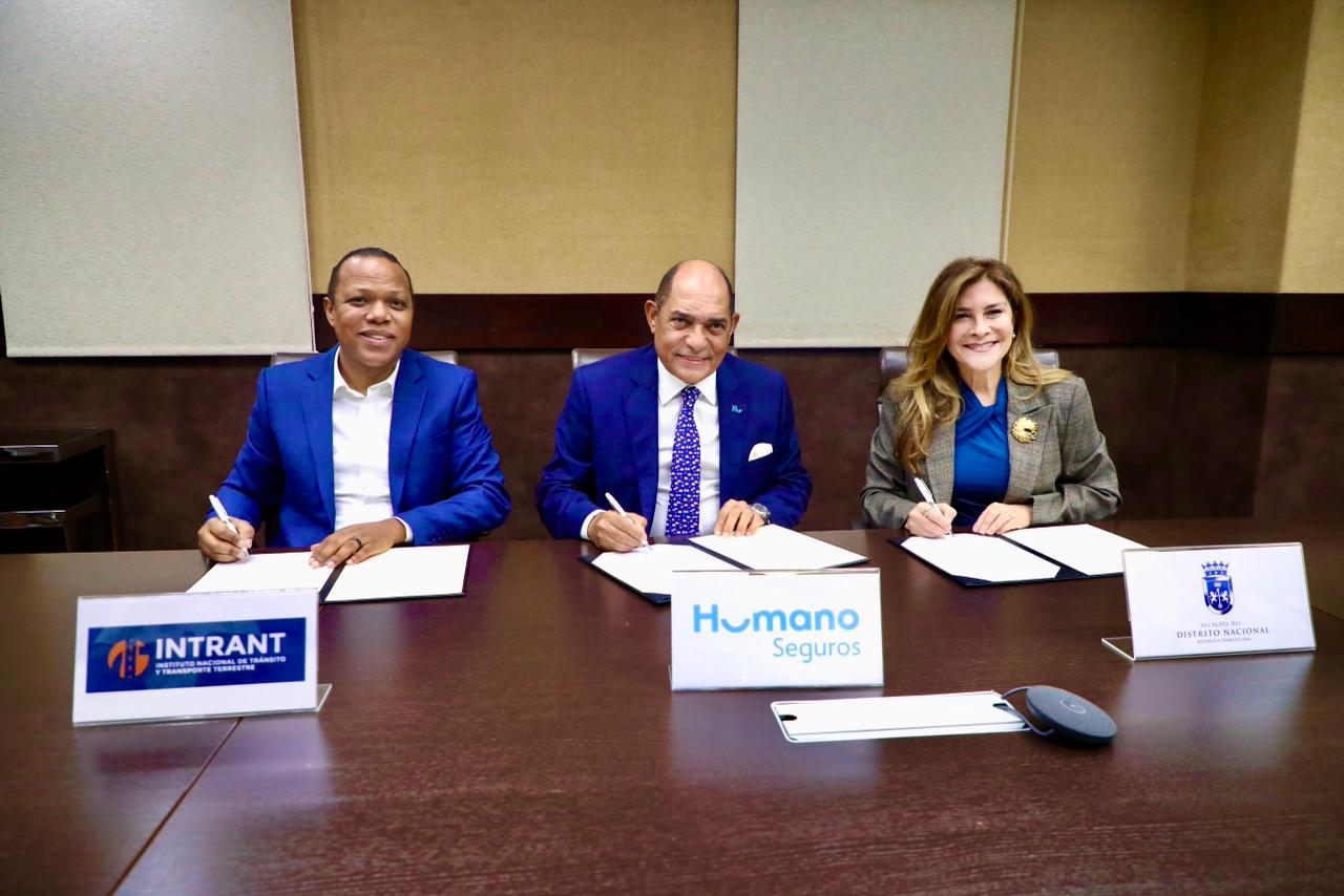 Santo Domingo.- El Instituto Nacional de Tránsito y Transporte Terrestre (INTRANT), la Alcaldía del Distrito Nacional (ADN) y Humano Seguros firmaron un acuerdo marco de cooperación, con el objetivo de fortalecer la seguridad vial y promover una movilidad más segura, responsable y enfocada en la protección de la vida en la República Dominicana.