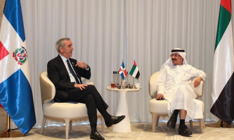El presidente Luis Abinader sostuvo una reunión con el chairman y CEO del grupo logístico global DP World, Sultan Ahmed bin Sulayem, en la sede de la empresa en Jebel Ali, uno de los complejos logísticos más avanzados del mundo, como parte de los esfuerzos del Gobierno para seguir consolidando a la República Dominicana como un hub estratégico para el comercio y la inversión en el Caribe.