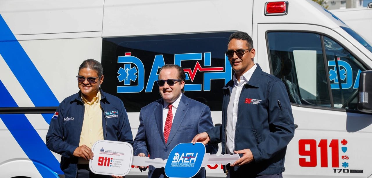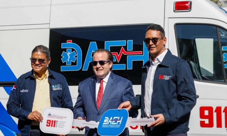 Santo Domingo.– El Sistema Nacional de Atención a Emergencias y Seguridad 911 entregó 50 nuevas y modernas ambulancias a la Dirección de Servicios de Atención a Emergencias Extrahospitalarias (DAEH), con el propósito de fortalecer la capacidad de respuesta ante emergencias en el territorio nacional.
