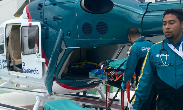 Otro caso de asistencia oportuna ocurrió días antes del asueto, específicamente viernes 27 de marzo, en que los servicios de Aeroambulancia trasladaron a un paciente menor de edad desde la Sierra de Hato Mayor, al complejo hospitalario Ciudad Sanitaria Dra. Evangelina Rodríguez Perezo, en Santo Domingo Norte, utilizando como plataforma el moderno helipuerto de ese mismo nombre, ubicado en la zona, para que el paciente recibiera atención en el Traumatológico Dr. Ney Arias Lora._