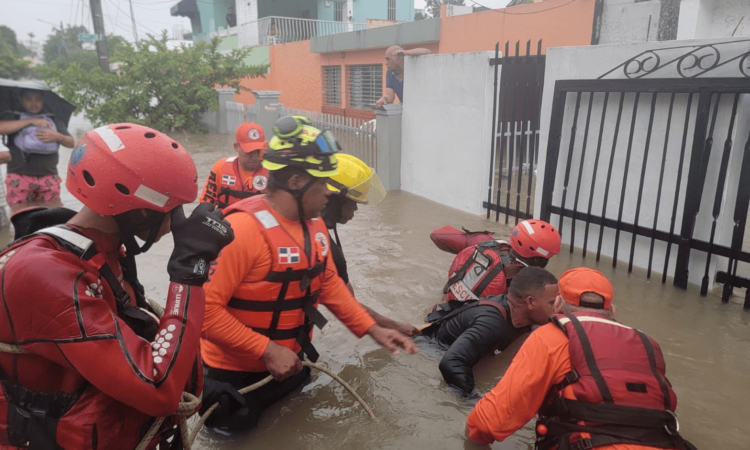 Mientras que, técnicos de la Defensa Civil rescataron con vida a un señor que quedó atrapado en una alcantarilla del sector Las Praderas en Santo Domingo Oeste, donde también llevaron a diez adultos mayores a una zona segura tras las inundaciones.