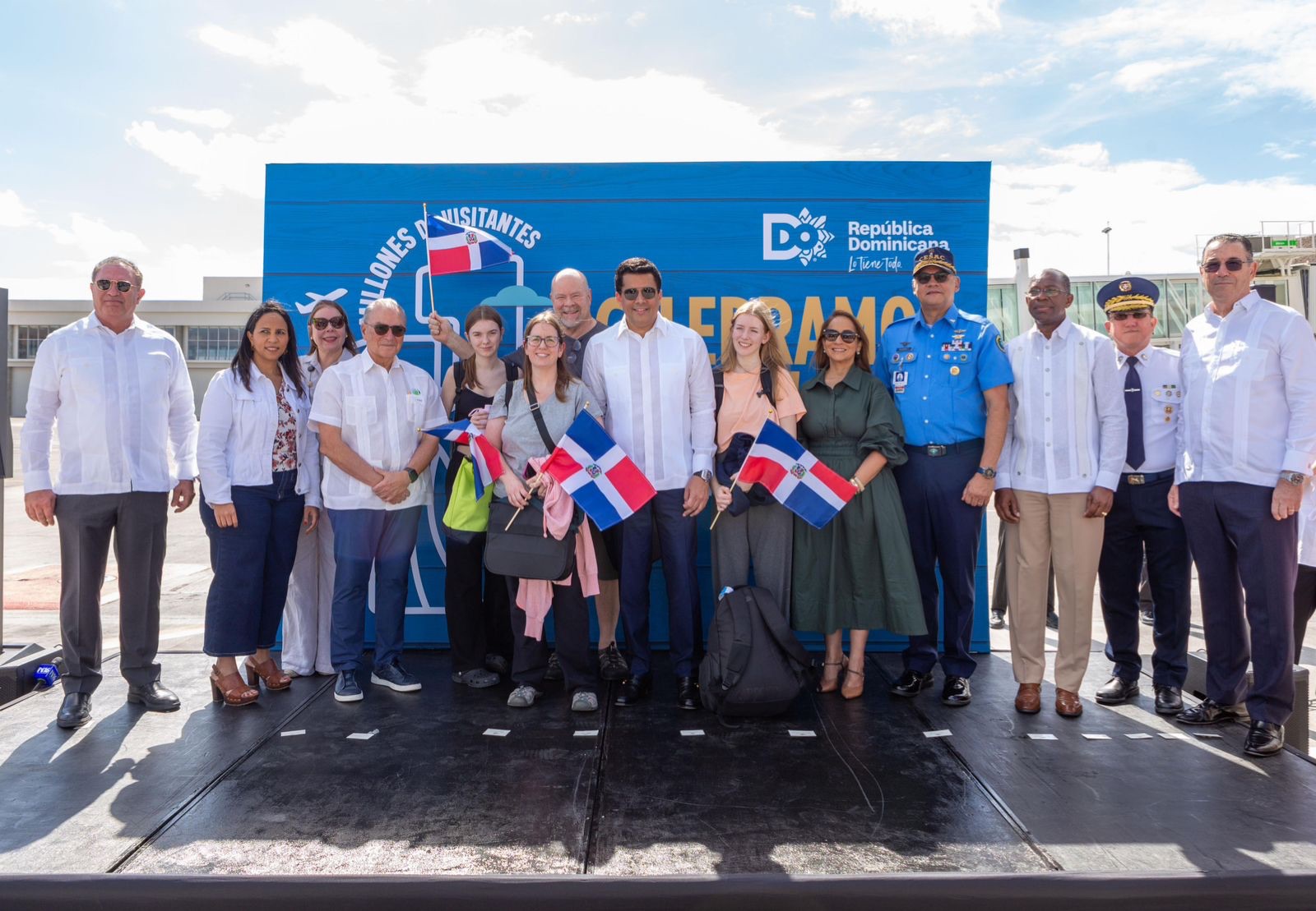 El ministro de Turismo, David Collado, recibió este domingo al turista 11 millones, en un colorido acto que se llevó a cabo en el aeropuerto internacional de Punta Cana.
