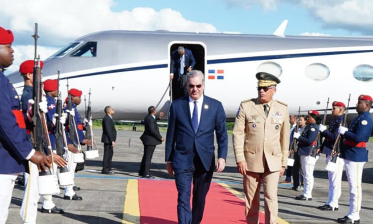 El mandatario viajó acompañado por el canciller Roberto Álvarez; el vicecanciller de Asuntos Consulares y Migratorios, Opinio Díaz Vargas; los directores, de la Dirección General de Impuestos Internos (DGII), Luis Valdez; del Despacho Presidencial, Noelia Shephard, y el jefe del Cuerpo de Seguridad Presidencial (Cusep), mayor general Jimmy Arias Grullón.